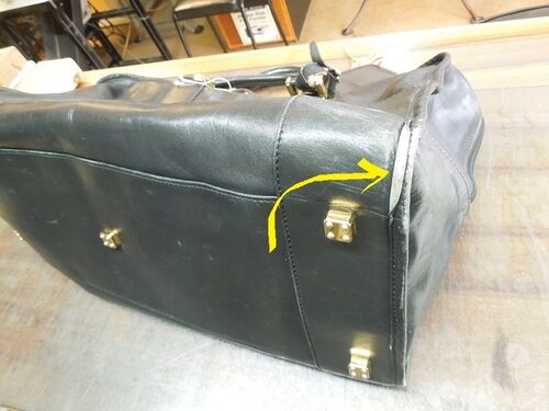 バック本体は シッカリした厚い革で作られているので 問題ないのですが その本体を守るパイピングが・・・ 折り返し部分が裏返ったり スレ傷から破損したり 大変です では、 本体にあわせて 厚い革でバック一周~ デザインからも コバ出しのパイピングでオー…