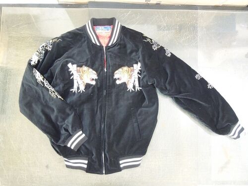 ヨコスカから セカイに飛び出した スカジャン! 今回は ベロア生地のジャンパーがいらっしゃいました 生地の素材や色のおかげか シンプルでスッキリのスカジャンです しかし、 オーナーさま曰く 着丈が長いようですので サイズダウンしましょう~ ポケットギ…